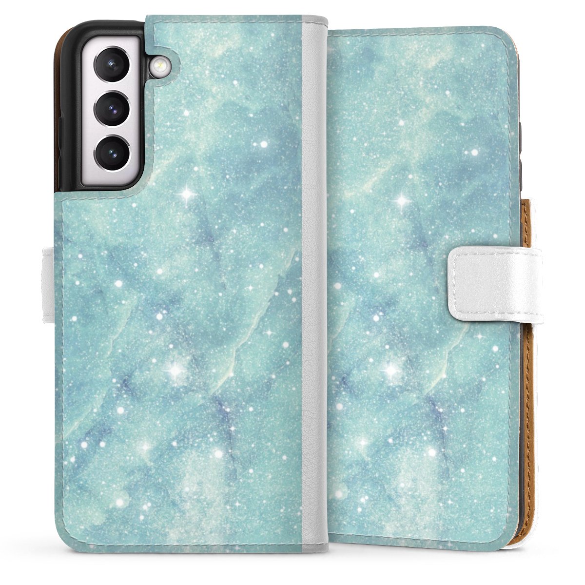 For our Sideflip Case we are using our advanced direct printing technology. The back and frontside are fully printabale, the inside of the phone bag is left unprinted. You can order the phone case without print, printed completely or also with a partial print.