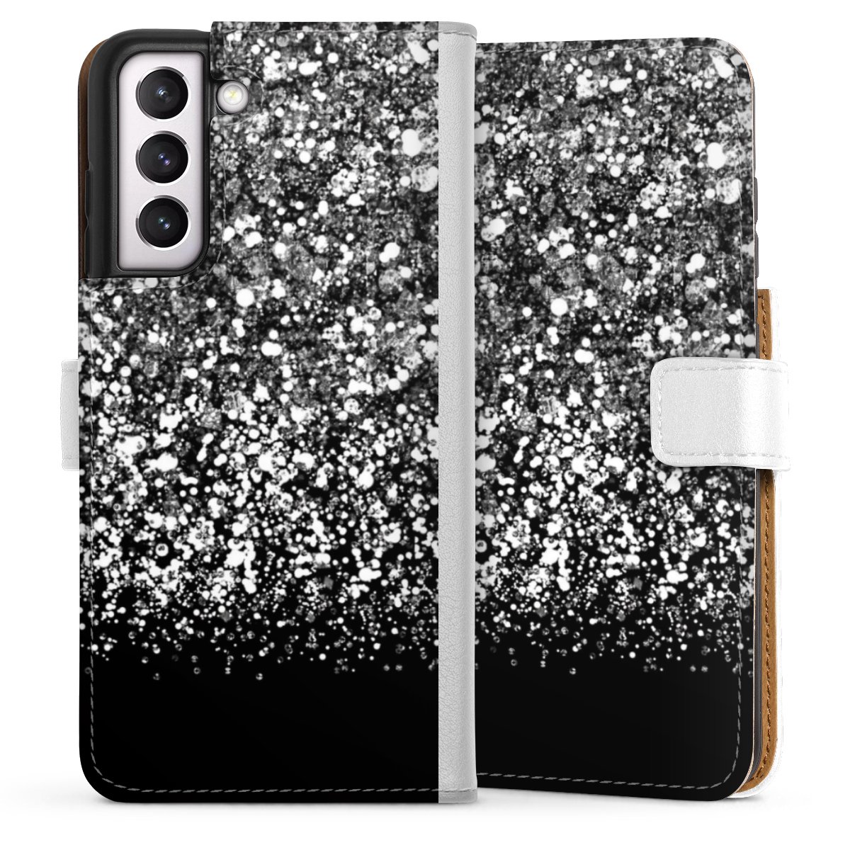 For our Sideflip Case we are using our advanced direct printing technology. The back and frontside are fully printabale, the inside of the phone bag is left unprinted. You can order the phone case without print, printed completely or also with a partial print.