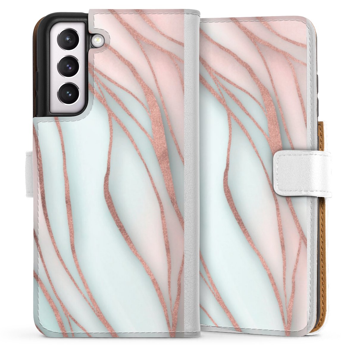 For our Sideflip Case we are using our advanced direct printing technology. The back and frontside are fully printabale, the inside of the phone bag is left unprinted. You can order the phone case without print, printed completely or also with a partial print.