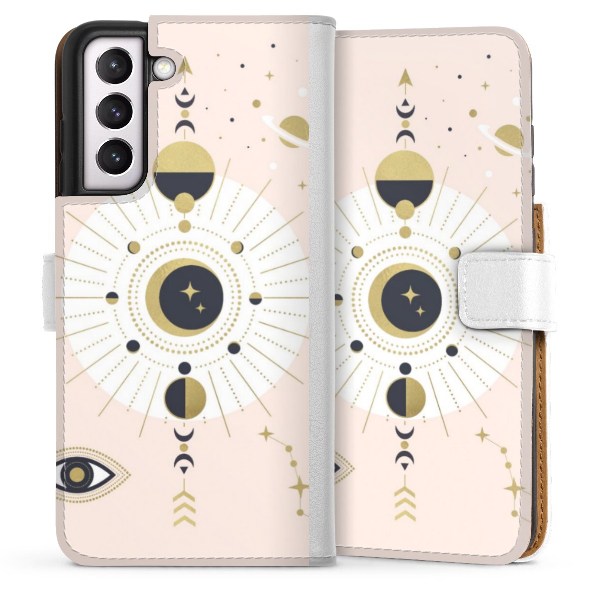 For our Sideflip Case we are using our advanced direct printing technology. The back and frontside are fully printabale, the inside of the phone bag is left unprinted. You can order the phone case without print, printed completely or also with a partial print.