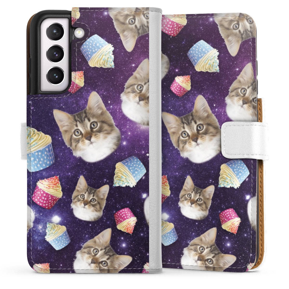 For our Sideflip Case we are using our advanced direct printing technology. The back and frontside are fully printabale, the inside of the phone bag is left unprinted. You can order the phone case without print, printed completely or also with a partial print.