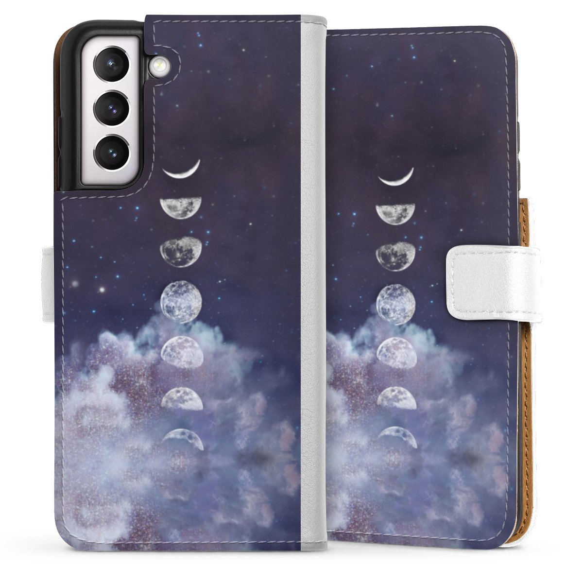 For our Sideflip Case we are using our advanced direct printing technology. The back and frontside are fully printabale, the inside of the phone bag is left unprinted. You can order the phone case without print, printed completely or also with a partial print.