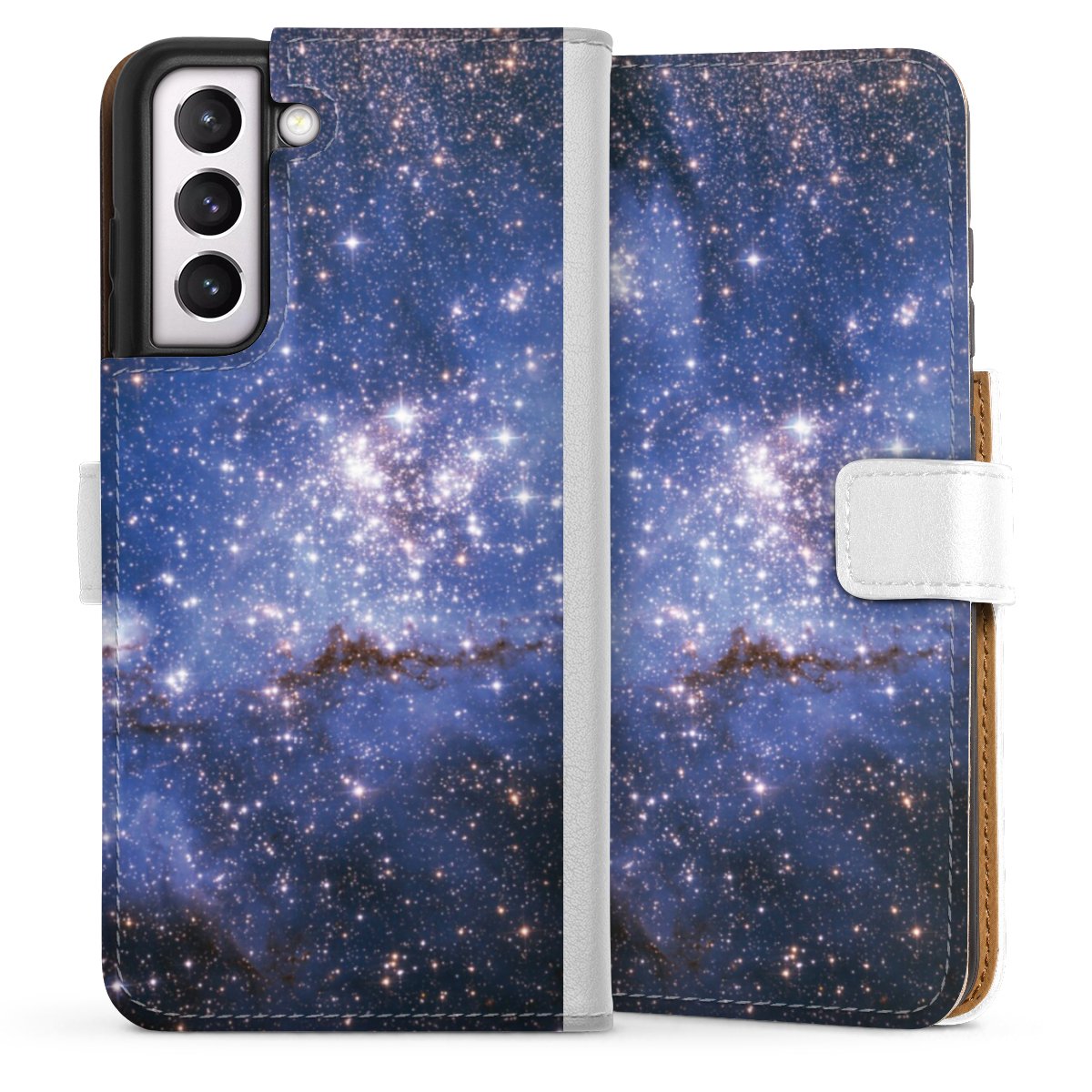 For our Sideflip Case we are using our advanced direct printing technology. The back and frontside are fully printabale, the inside of the phone bag is left unprinted. You can order the phone case without print, printed completely or also with a partial print.