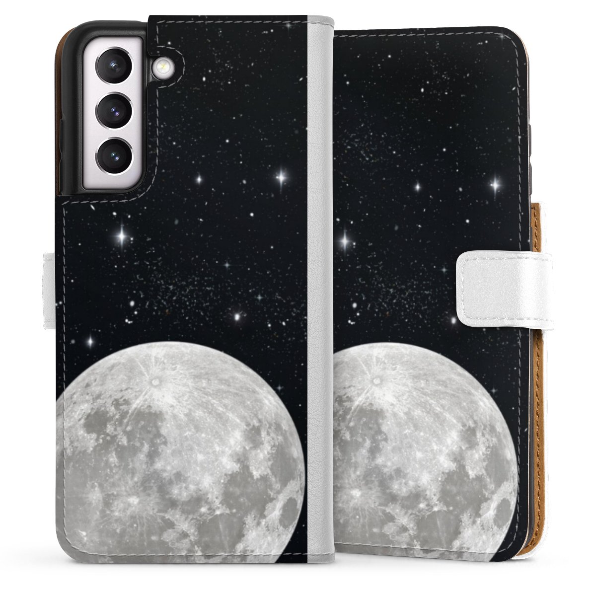 For our Sideflip Case we are using our advanced direct printing technology. The back and frontside are fully printabale, the inside of the phone bag is left unprinted. You can order the phone case without print, printed completely or also with a partial print.