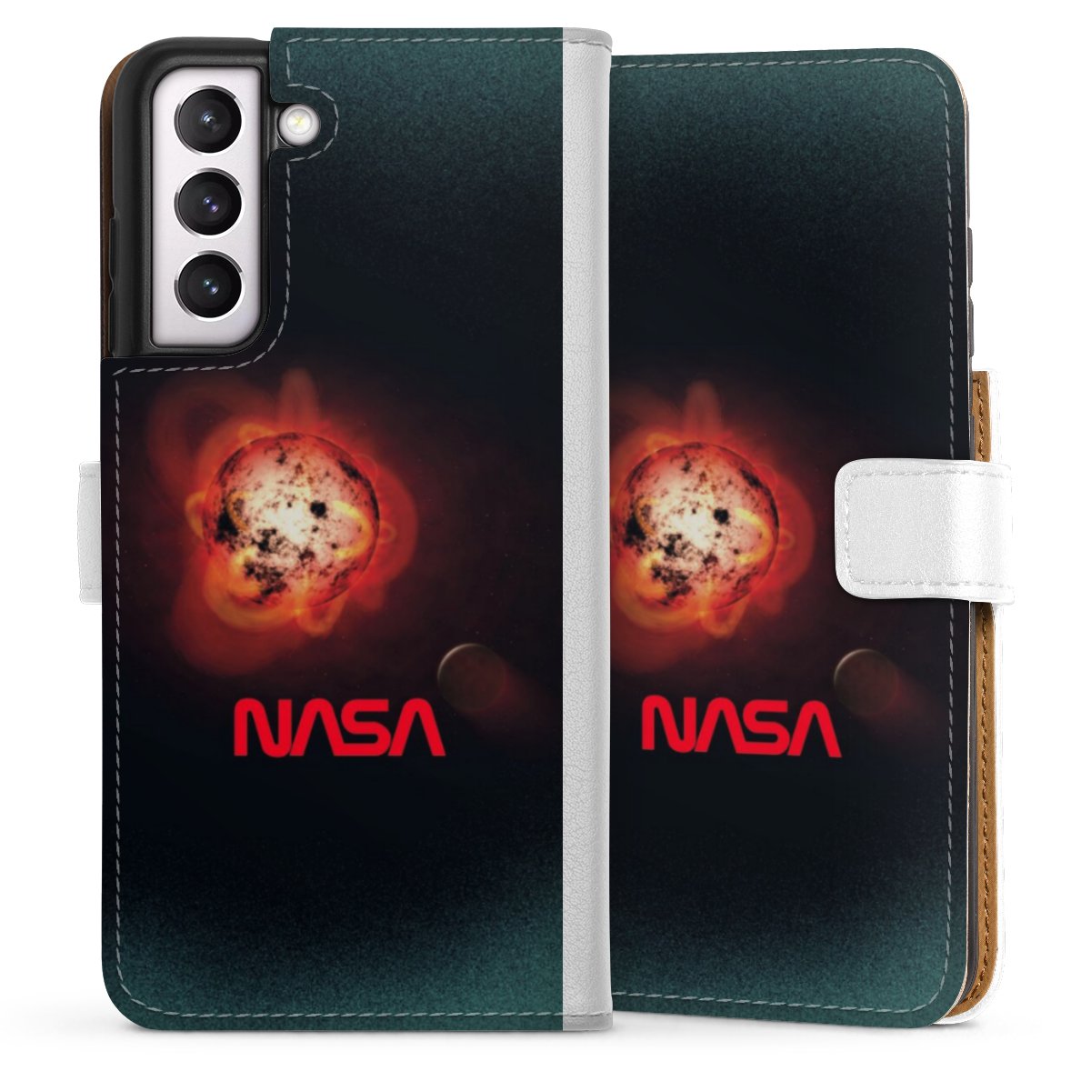 For our Sideflip Case we are using our advanced direct printing technology. The back and frontside are fully printabale, the inside of the phone bag is left unprinted. You can order the phone case without print, printed completely or also with a partial print.