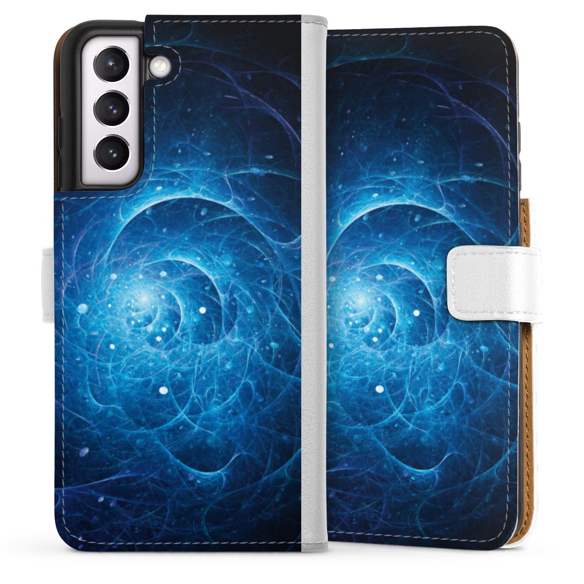 For our Sideflip Case we are using our advanced direct printing technology. The back and frontside are fully printabale, the inside of the phone bag is left unprinted. You can order the phone case without print, printed completely or also with a partial print.