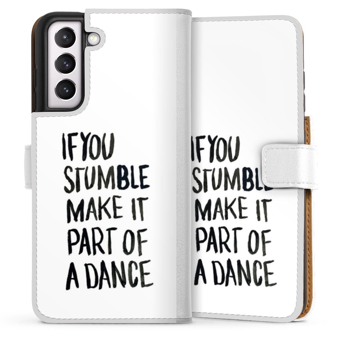 For our Sideflip Case we are using our advanced direct printing technology. The back and frontside are fully printabale, the inside of the phone bag is left unprinted. You can order the phone case without print, printed completely or also with a partial print.