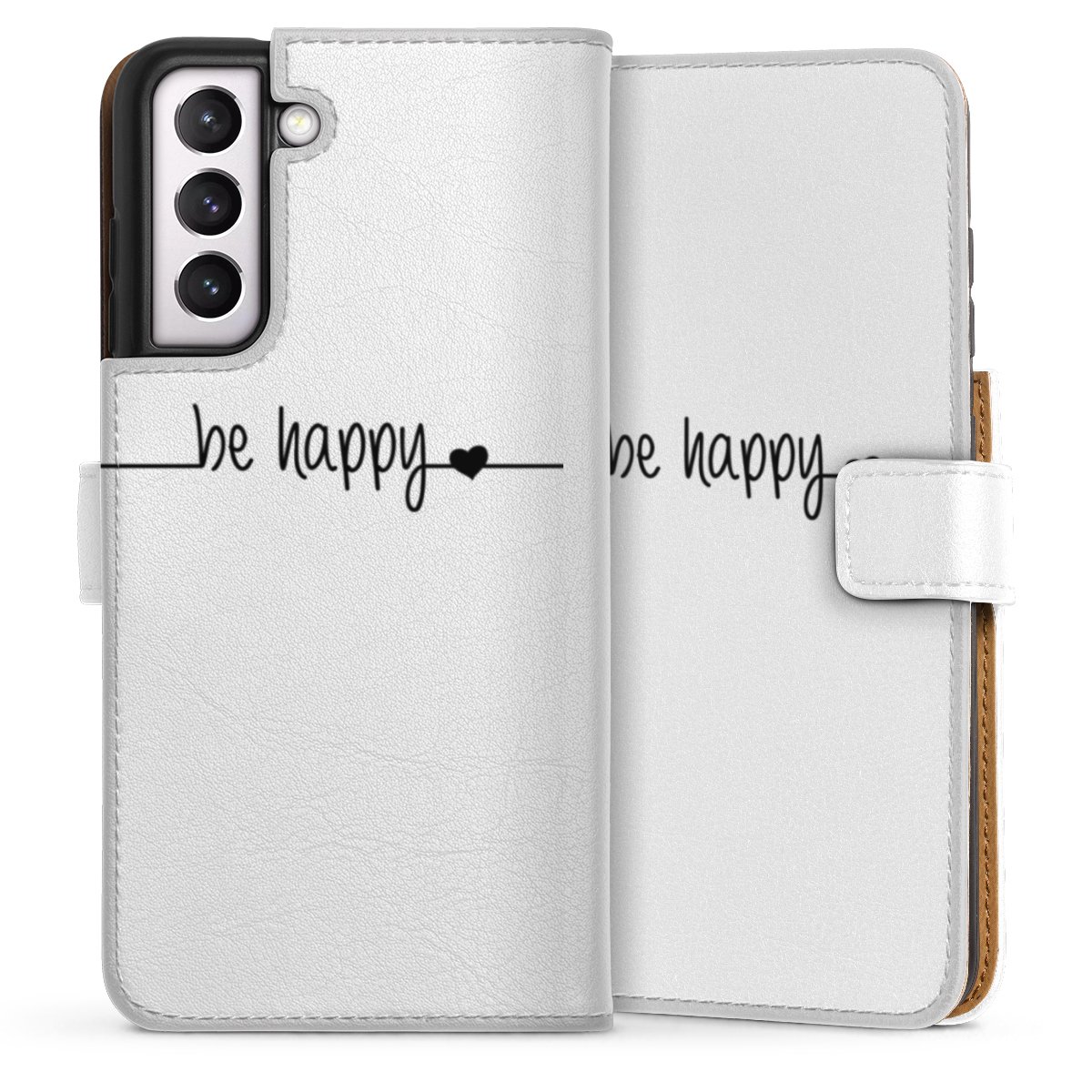 For our Sideflip Case we are using our advanced direct printing technology. The back and frontside are fully printabale, the inside of the phone bag is left unprinted. You can order the phone case without print, printed completely or also with a partial print.