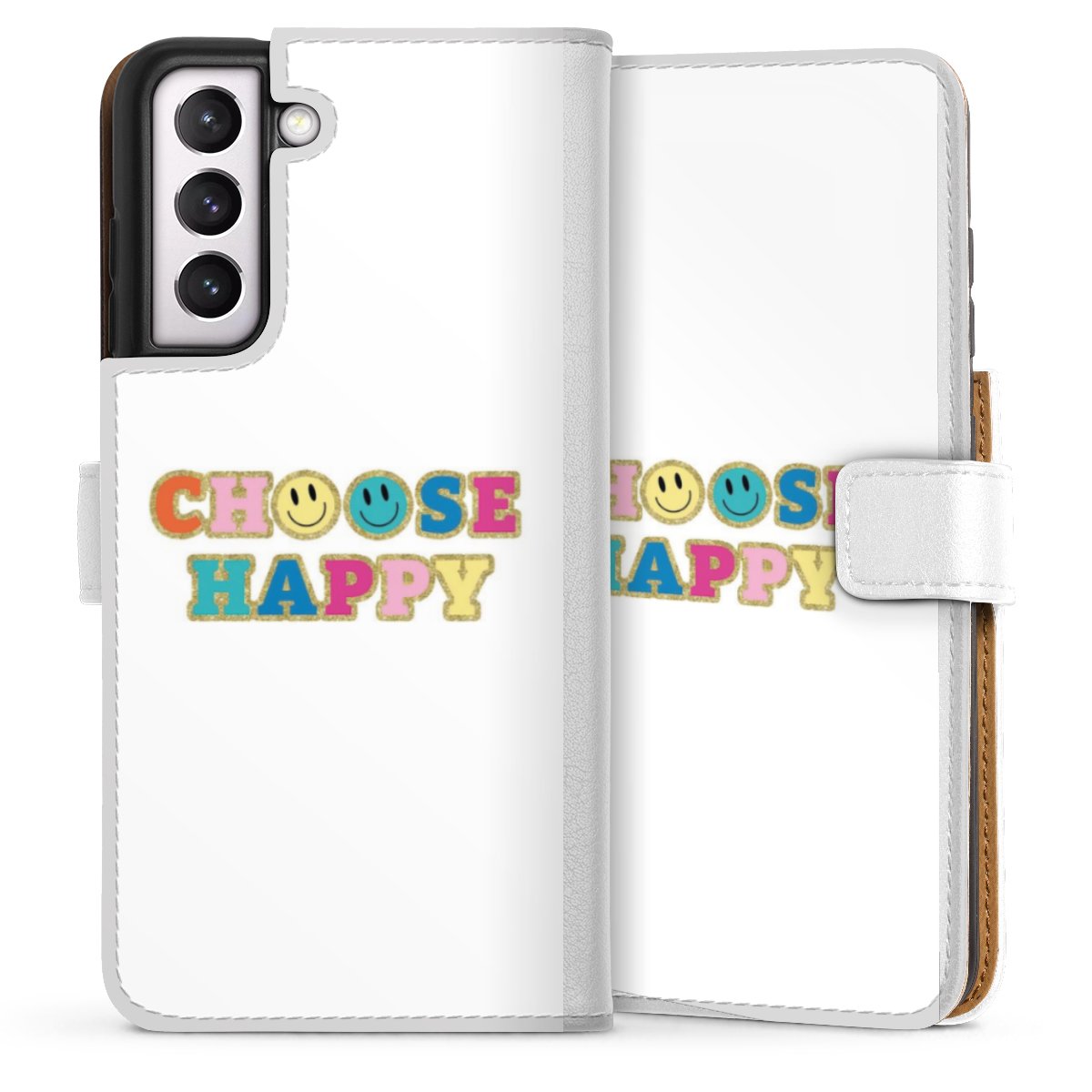For our Sideflip Case we are using our advanced direct printing technology. The back and frontside are fully printabale, the inside of the phone bag is left unprinted. You can order the phone case without print, printed completely or also with a partial print.
