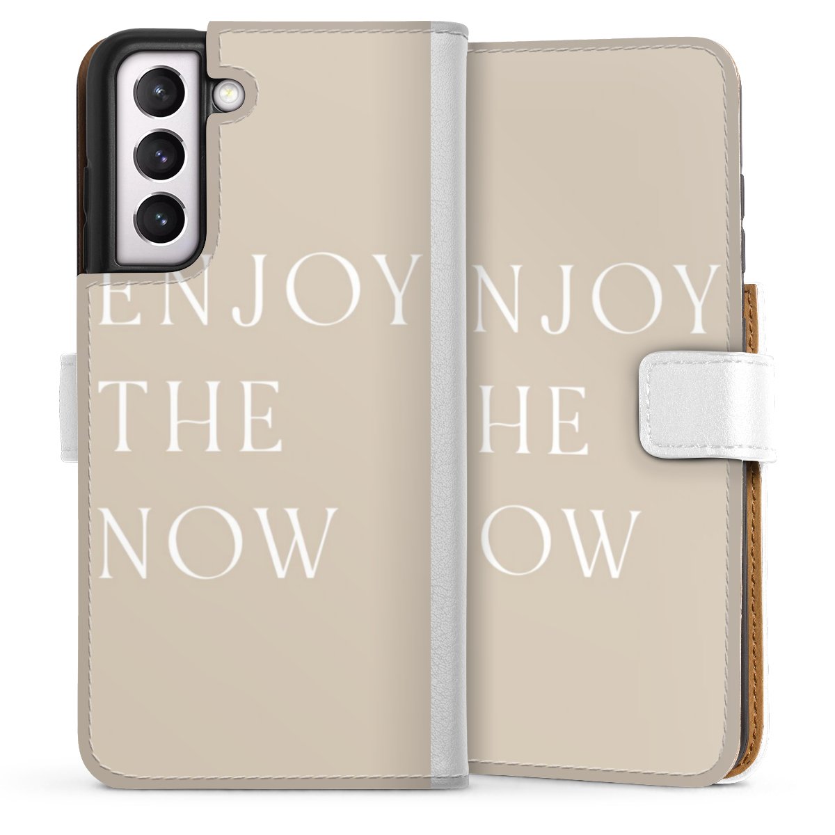 For our Sideflip Case we are using our advanced direct printing technology. The back and frontside are fully printabale, the inside of the phone bag is left unprinted. You can order the phone case without print, printed completely or also with a partial print.
