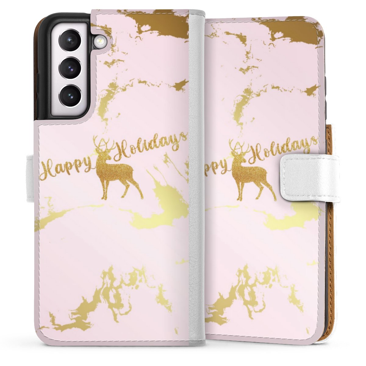 For our Sideflip Case we are using our advanced direct printing technology. The back and frontside are fully printabale, the inside of the phone bag is left unprinted. You can order the phone case without print, printed completely or also with a partial print.