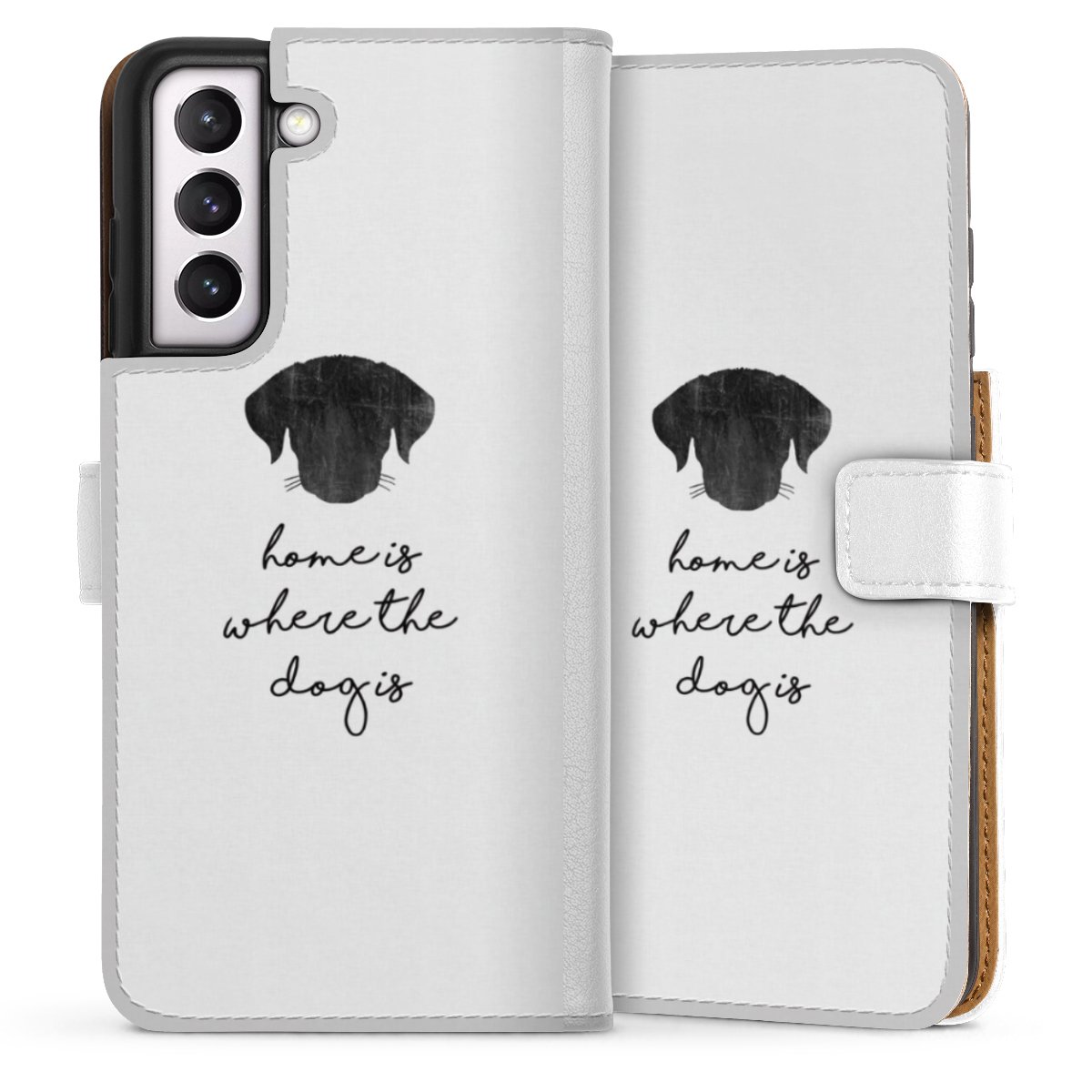 For our Sideflip Case we are using our advanced direct printing technology. The back and frontside are fully printabale, the inside of the phone bag is left unprinted. You can order the phone case without print, printed completely or also with a partial print.