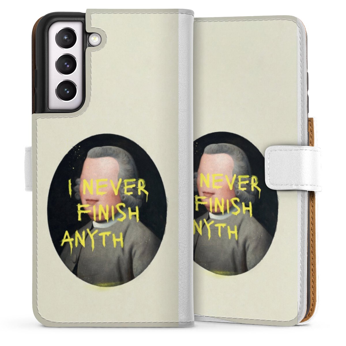 For our Sideflip Case we are using our advanced direct printing technology. The back and frontside are fully printabale, the inside of the phone bag is left unprinted. You can order the phone case without print, printed completely or also with a partial print.