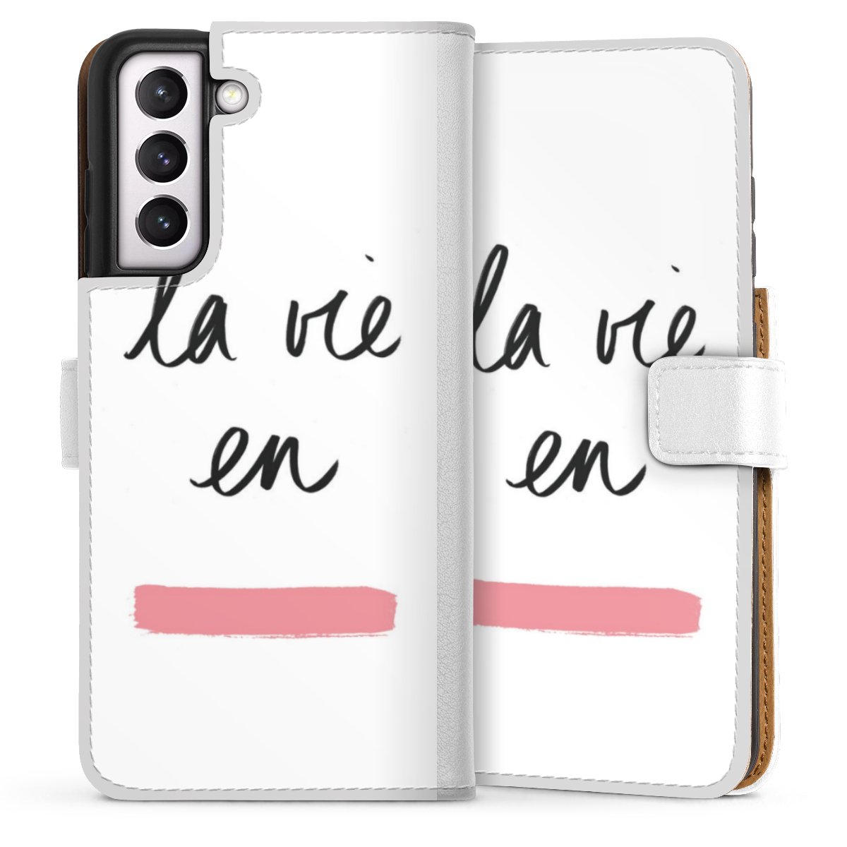 For our Sideflip Case we are using our advanced direct printing technology. The back and frontside are fully printabale, the inside of the phone bag is left unprinted. You can order the phone case without print, printed completely or also with a partial print.