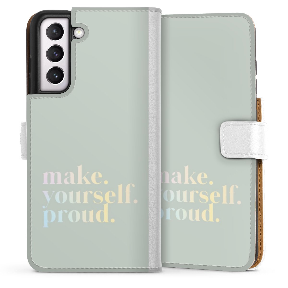 For our Sideflip Case we are using our advanced direct printing technology. The back and frontside are fully printabale, the inside of the phone bag is left unprinted. You can order the phone case without print, printed completely or also with a partial print.