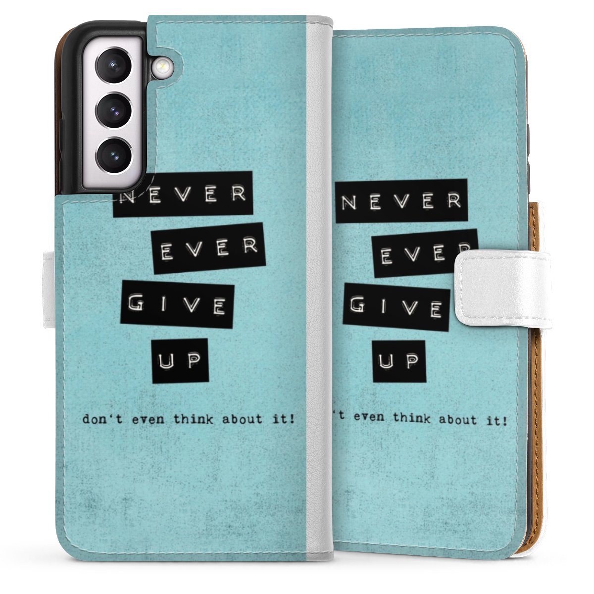 For our Sideflip Case we are using our advanced direct printing technology. The back and frontside are fully printabale, the inside of the phone bag is left unprinted. You can order the phone case without print, printed completely or also with a partial print.