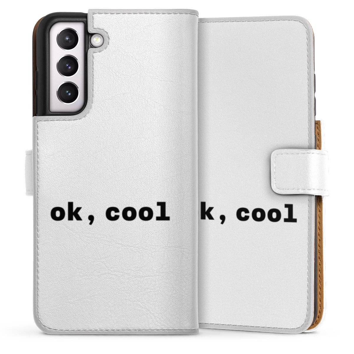 For our Sideflip Case we are using our advanced direct printing technology. The back and frontside are fully printabale, the inside of the phone bag is left unprinted. You can order the phone case without print, printed completely or also with a partial print.