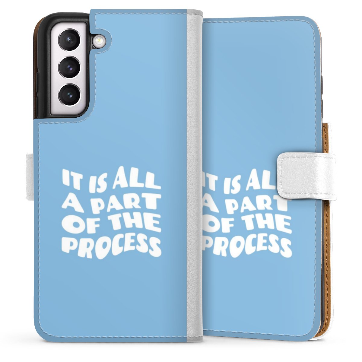 For our Sideflip Case we are using our advanced direct printing technology. The back and frontside are fully printabale, the inside of the phone bag is left unprinted. You can order the phone case without print, printed completely or also with a partial print.