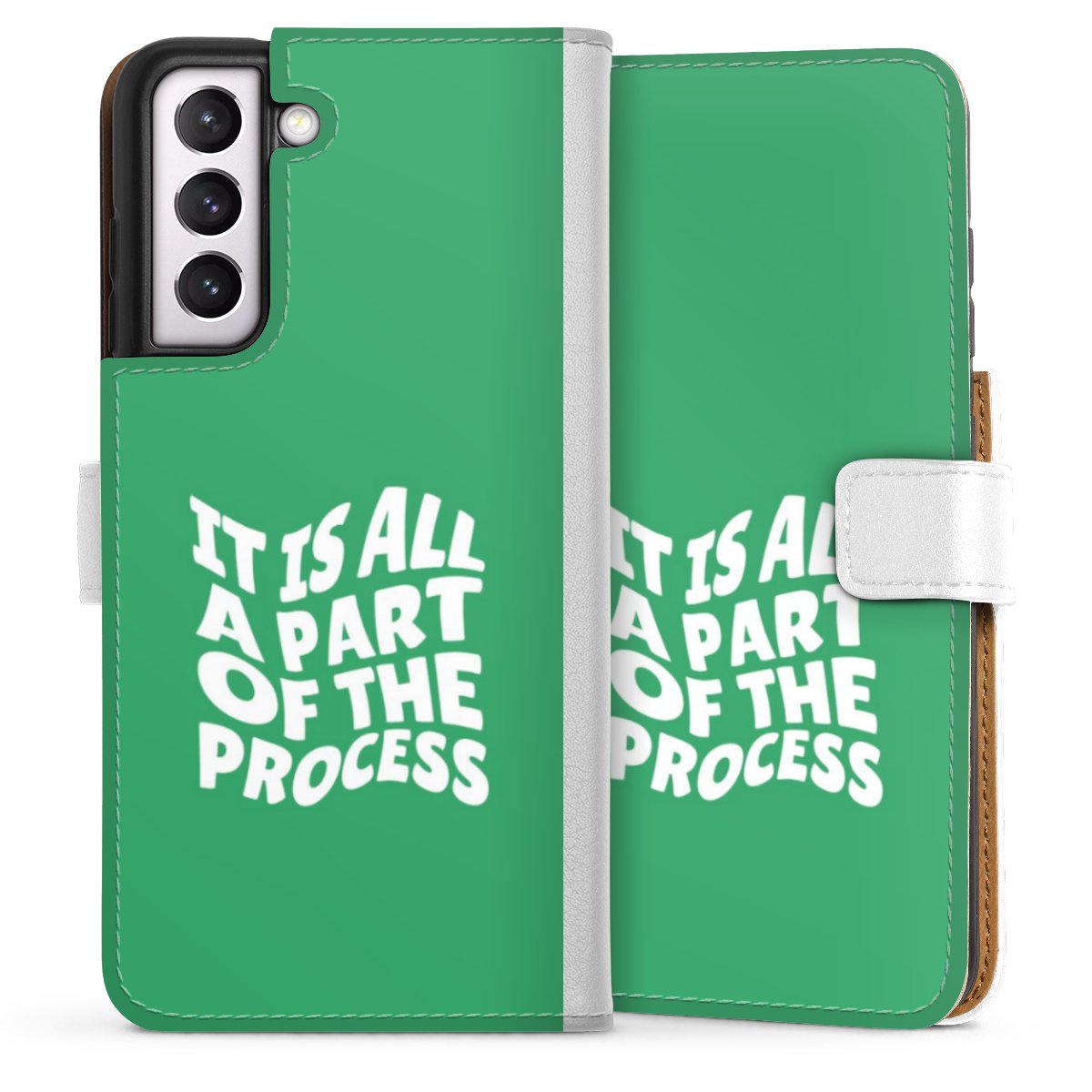 For our Sideflip Case we are using our advanced direct printing technology. The back and frontside are fully printabale, the inside of the phone bag is left unprinted. You can order the phone case without print, printed completely or also with a partial print.