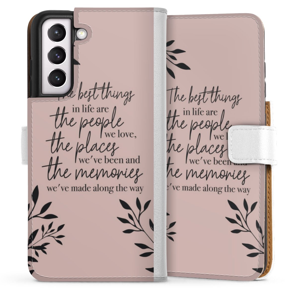 For our Sideflip Case we are using our advanced direct printing technology. The back and frontside are fully printabale, the inside of the phone bag is left unprinted. You can order the phone case without print, printed completely or also with a partial print.