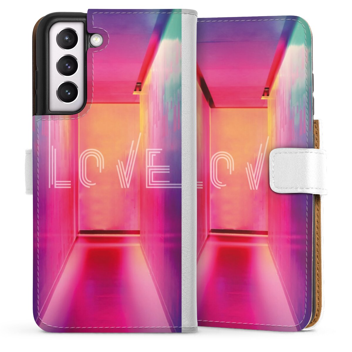 For our Sideflip Case we are using our advanced direct printing technology. The back and frontside are fully printabale, the inside of the phone bag is left unprinted. You can order the phone case without print, printed completely or also with a partial print.
