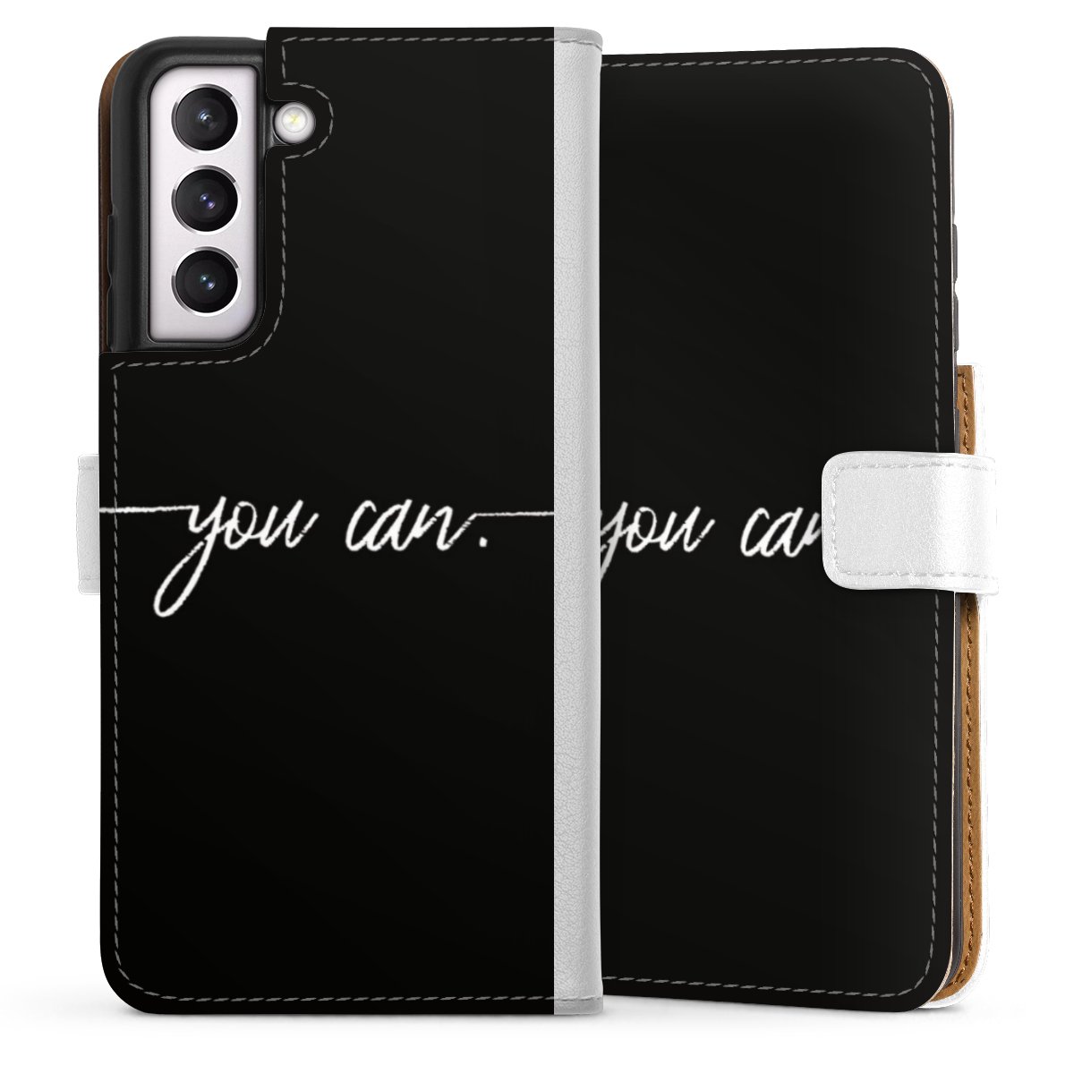 For our Sideflip Case we are using our advanced direct printing technology. The back and frontside are fully printabale, the inside of the phone bag is left unprinted. You can order the phone case without print, printed completely or also with a partial print.