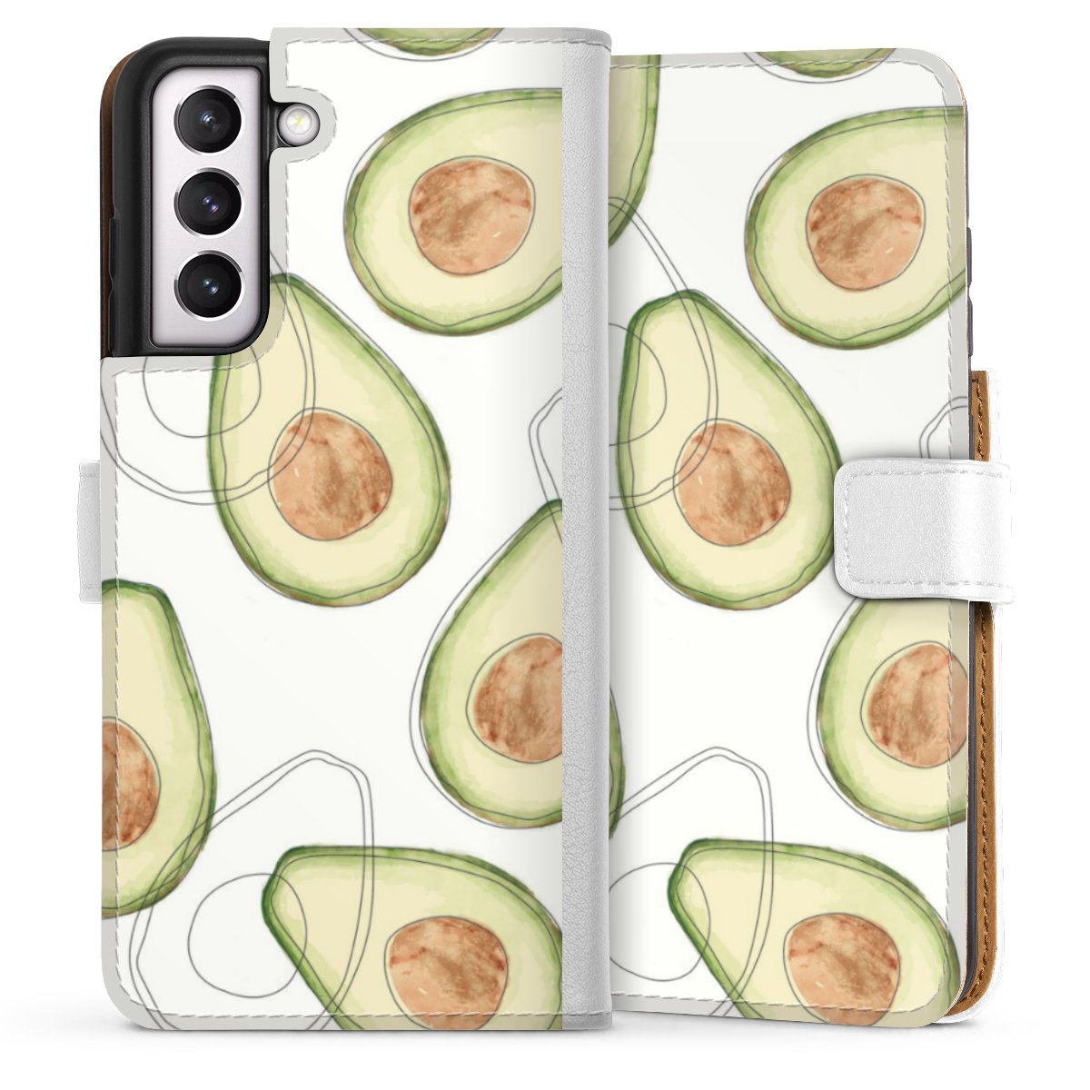 For our Sideflip Case we are using our advanced direct printing technology. The back and frontside are fully printabale, the inside of the phone bag is left unprinted. You can order the phone case without print, printed completely or also with a partial print.