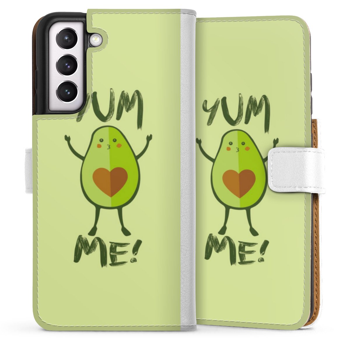 For our Sideflip Case we are using our advanced direct printing technology. The back and frontside are fully printabale, the inside of the phone bag is left unprinted. You can order the phone case without print, printed completely or also with a partial print.