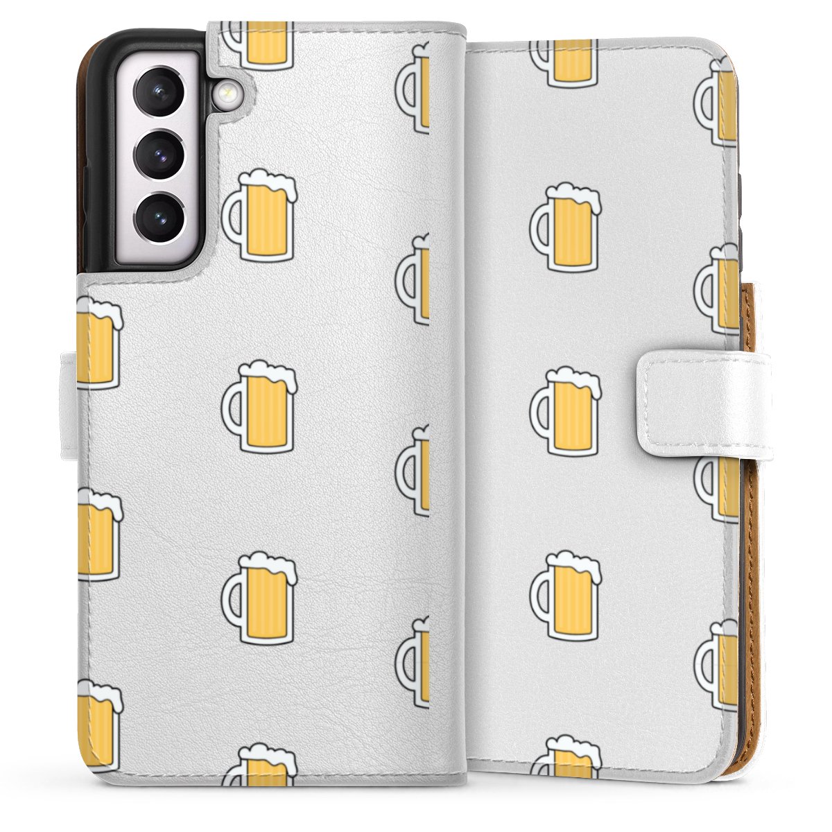 For our Sideflip Case we are using our advanced direct printing technology. The back and frontside are fully printabale, the inside of the phone bag is left unprinted. You can order the phone case without print, printed completely or also with a partial print.