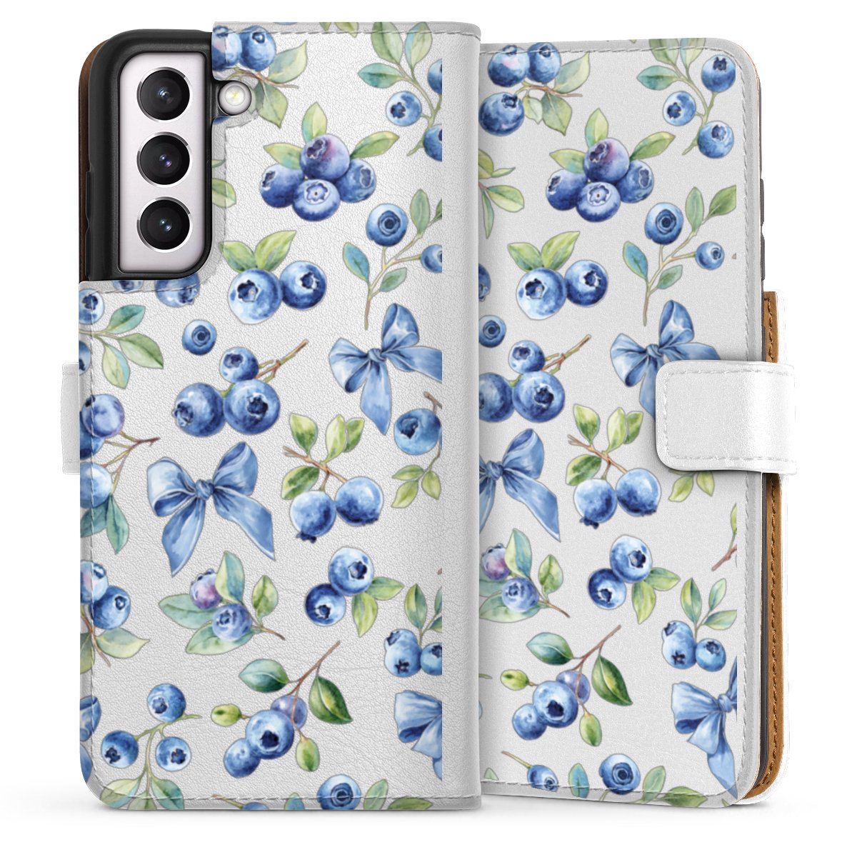 For our Sideflip Case we are using our advanced direct printing technology. The back and frontside are fully printabale, the inside of the phone bag is left unprinted. You can order the phone case without print, printed completely or also with a partial print.