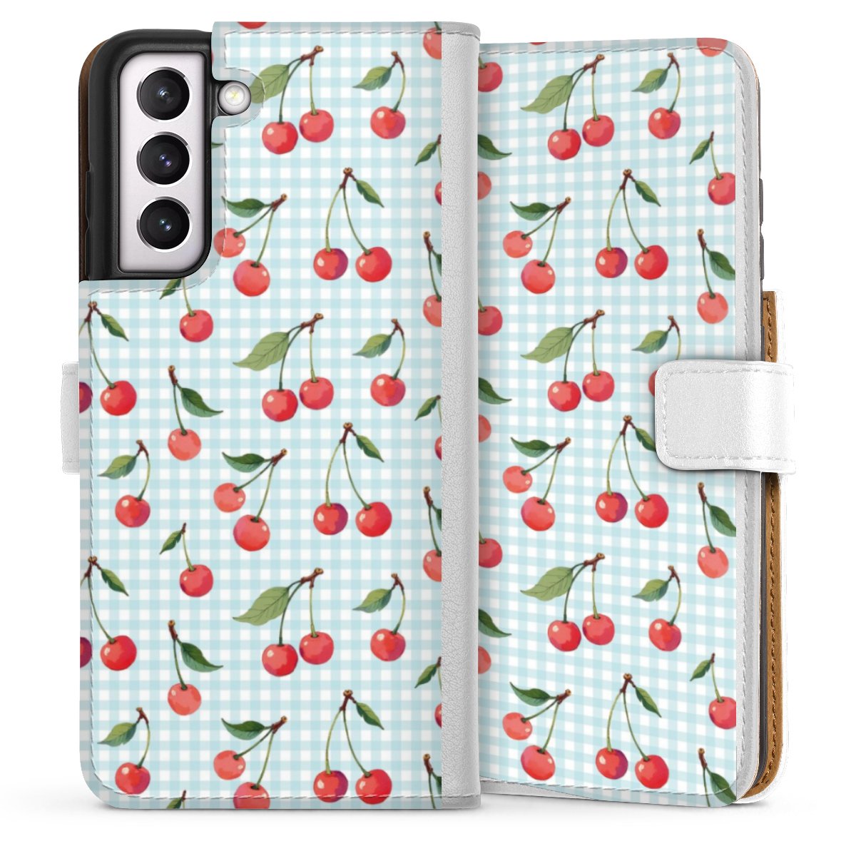 For our Sideflip Case we are using our advanced direct printing technology. The back and frontside are fully printabale, the inside of the phone bag is left unprinted. You can order the phone case without print, printed completely or also with a partial print.