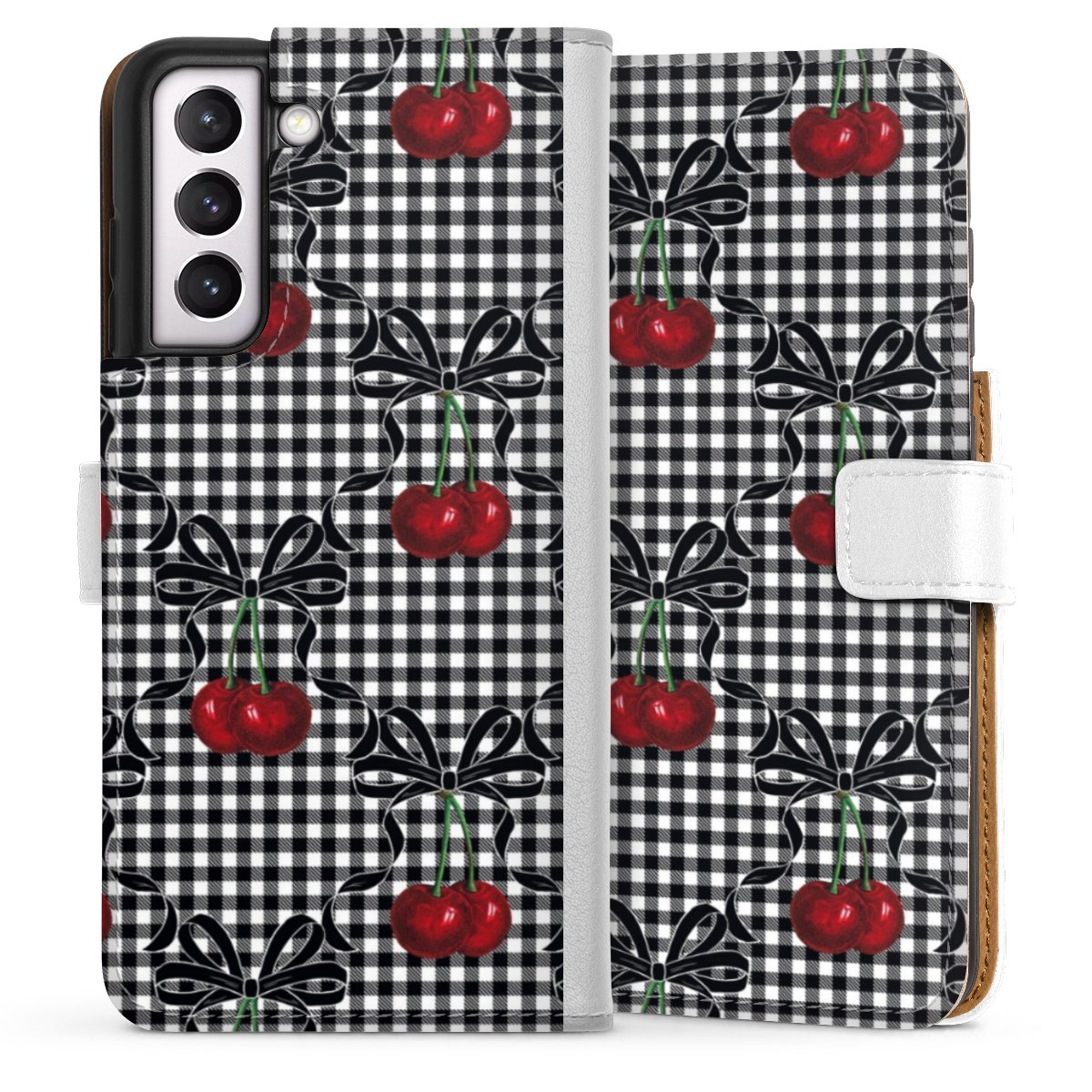 For our Sideflip Case we are using our advanced direct printing technology. The back and frontside are fully printabale, the inside of the phone bag is left unprinted. You can order the phone case without print, printed completely or also with a partial print.