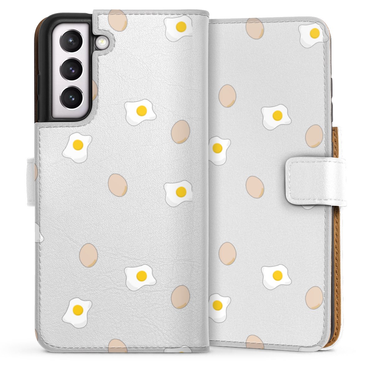 For our Sideflip Case we are using our advanced direct printing technology. The back and frontside are fully printabale, the inside of the phone bag is left unprinted. You can order the phone case without print, printed completely or also with a partial print.