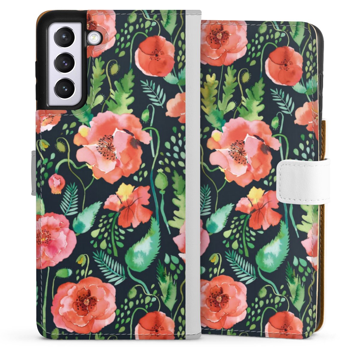 For our Sideflip Case we are using our advanced direct printing technology. The back and frontside are fully printabale, the inside of the phone bag is left unprinted. You can order the phone case without print, printed completely or also with a partial print.