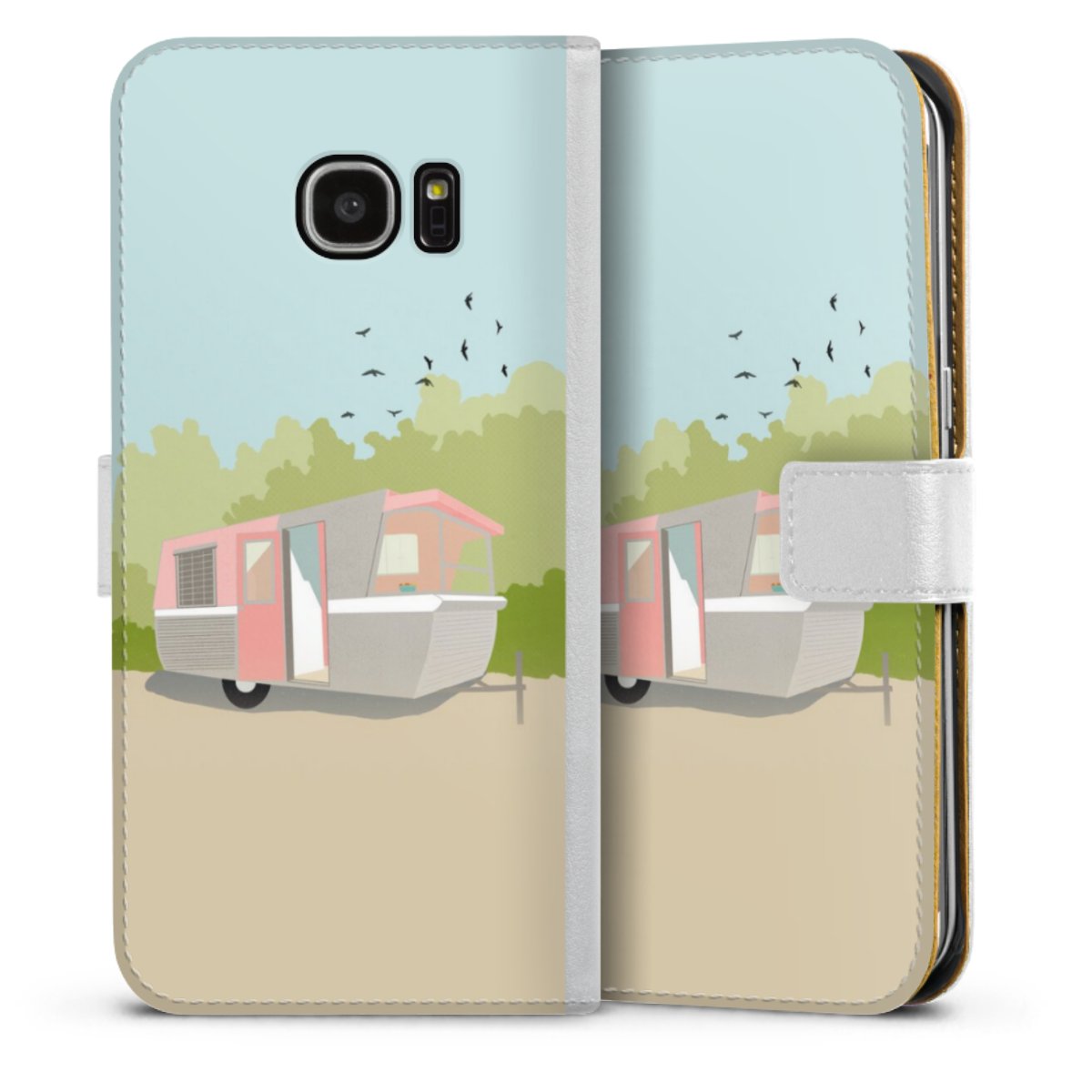 For our Sideflip Case we are using our advanced direct printing technology. The back and frontside are fully printabale, the inside of the phone bag is left unprinted. You can order the phone case without print, printed completely or also with a partial print.