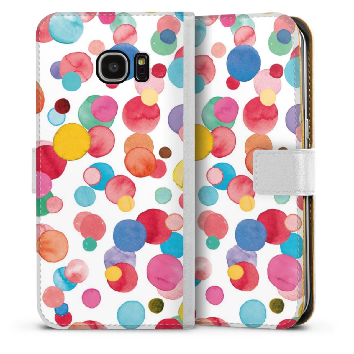 For our Sideflip Case we are using our advanced direct printing technology. The back and frontside are fully printabale, the inside of the phone bag is left unprinted. You can order the phone case without print, printed completely or also with a partial print.