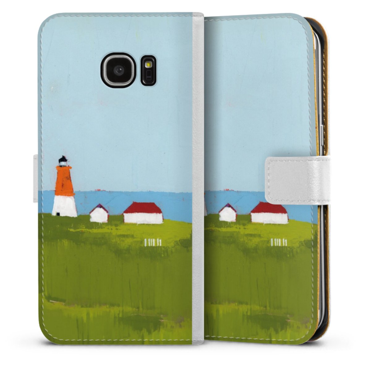For our Sideflip Case we are using our advanced direct printing technology. The back and frontside are fully printabale, the inside of the phone bag is left unprinted. You can order the phone case without print, printed completely or also with a partial print.