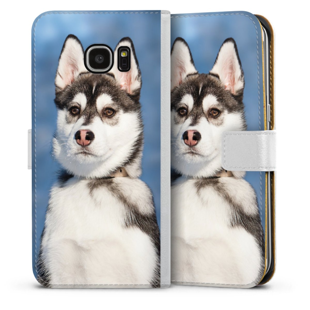 For our Sideflip Case we are using our advanced direct printing technology. The back and frontside are fully printabale, the inside of the phone bag is left unprinted. You can order the phone case without print, printed completely or also with a partial print.