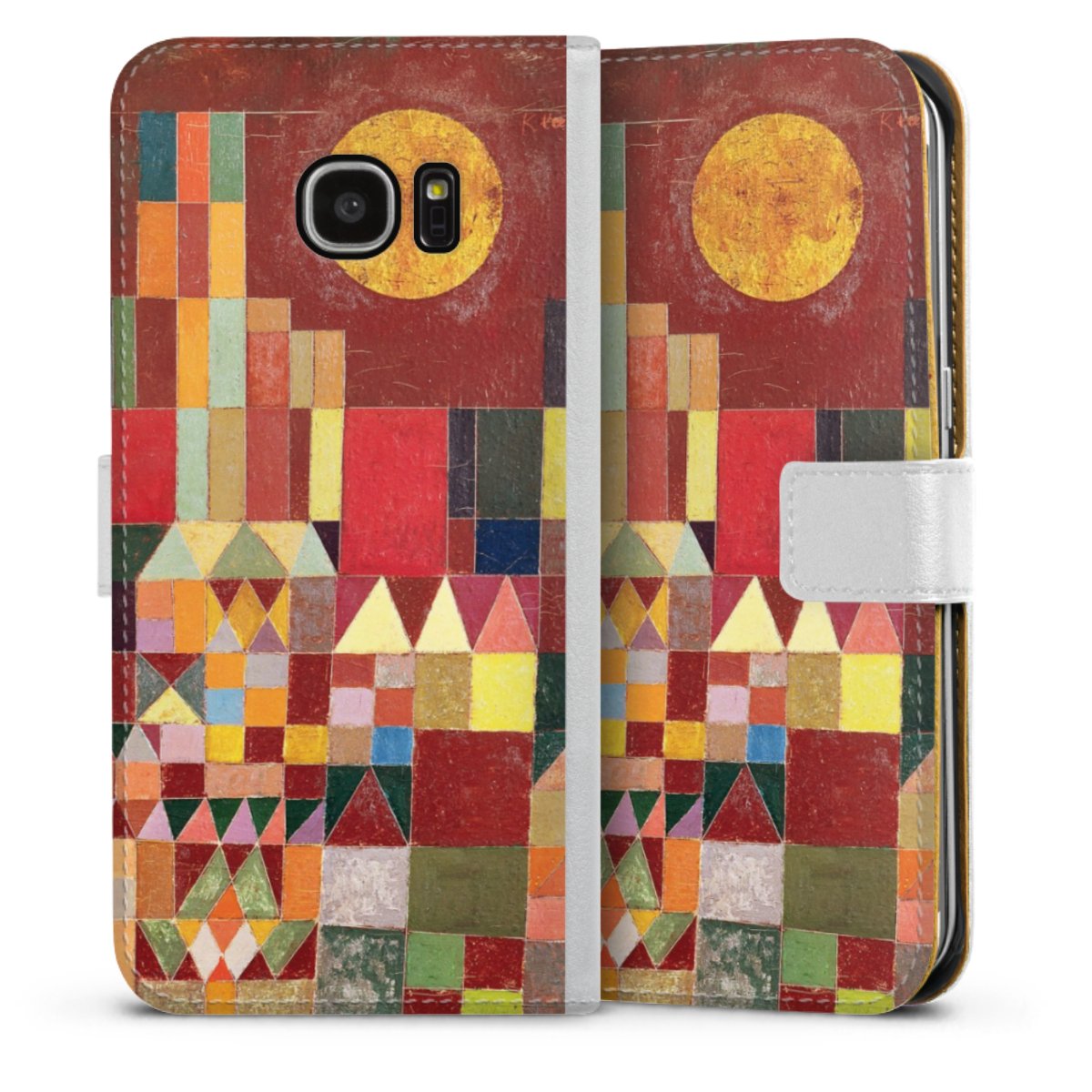 For our Sideflip Case we are using our advanced direct printing technology. The back and frontside are fully printabale, the inside of the phone bag is left unprinted. You can order the phone case without print, printed completely or also with a partial print.
