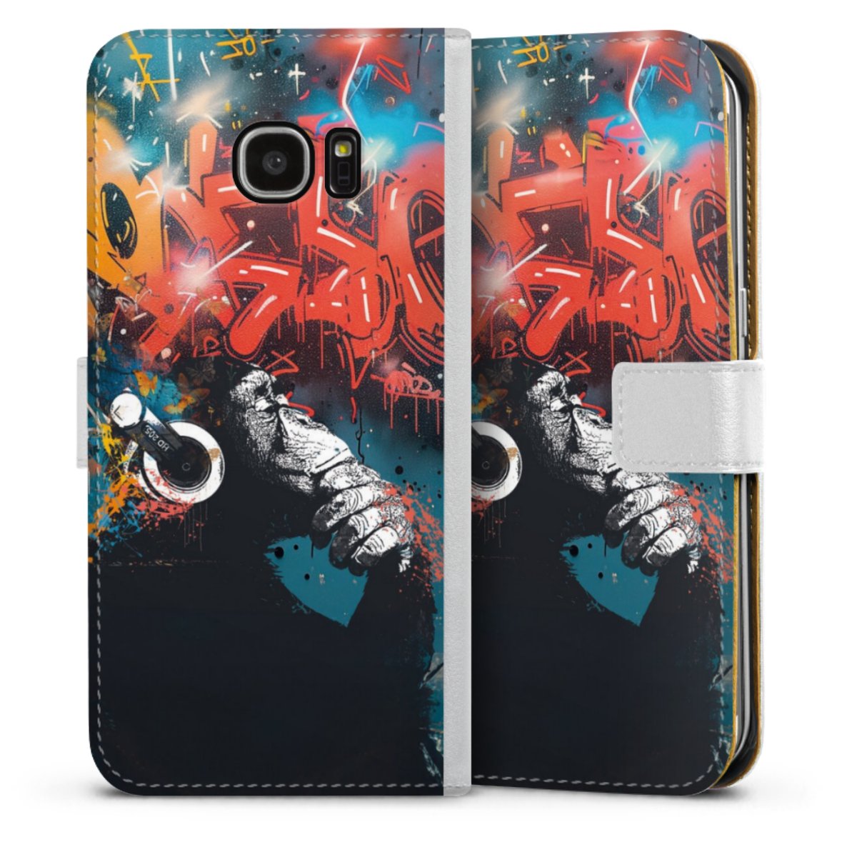 For our Sideflip Case we are using our advanced direct printing technology. The back and frontside are fully printabale, the inside of the phone bag is left unprinted. You can order the phone case without print, printed completely or also with a partial print.