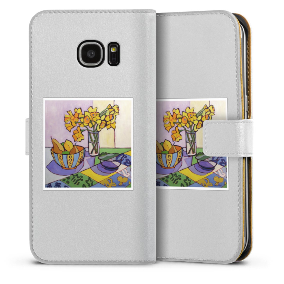 For our Sideflip Case we are using our advanced direct printing technology. The back and frontside are fully printabale, the inside of the phone bag is left unprinted. You can order the phone case without print, printed completely or also with a partial print.