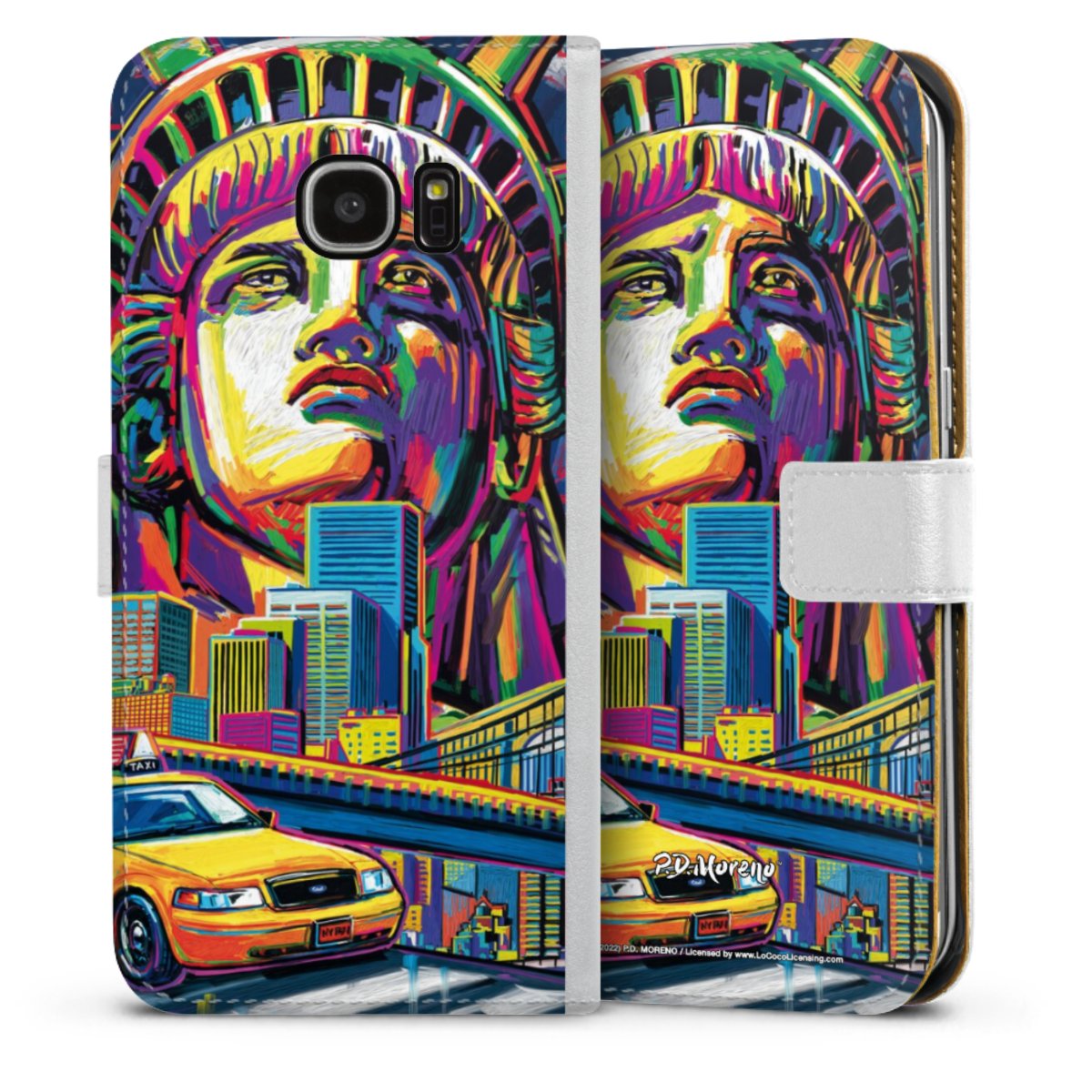 For our Sideflip Case we are using our advanced direct printing technology. The back and frontside are fully printabale, the inside of the phone bag is left unprinted. You can order the phone case without print, printed completely or also with a partial print.