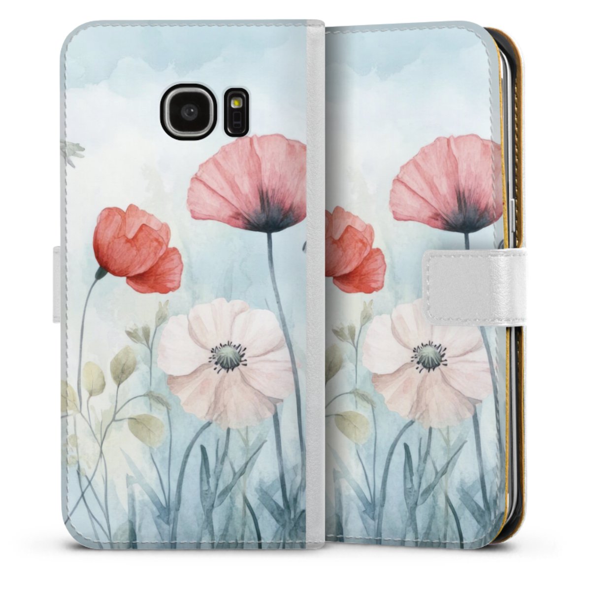 For our Sideflip Case we are using our advanced direct printing technology. The back and frontside are fully printabale, the inside of the phone bag is left unprinted. You can order the phone case without print, printed completely or also with a partial print.