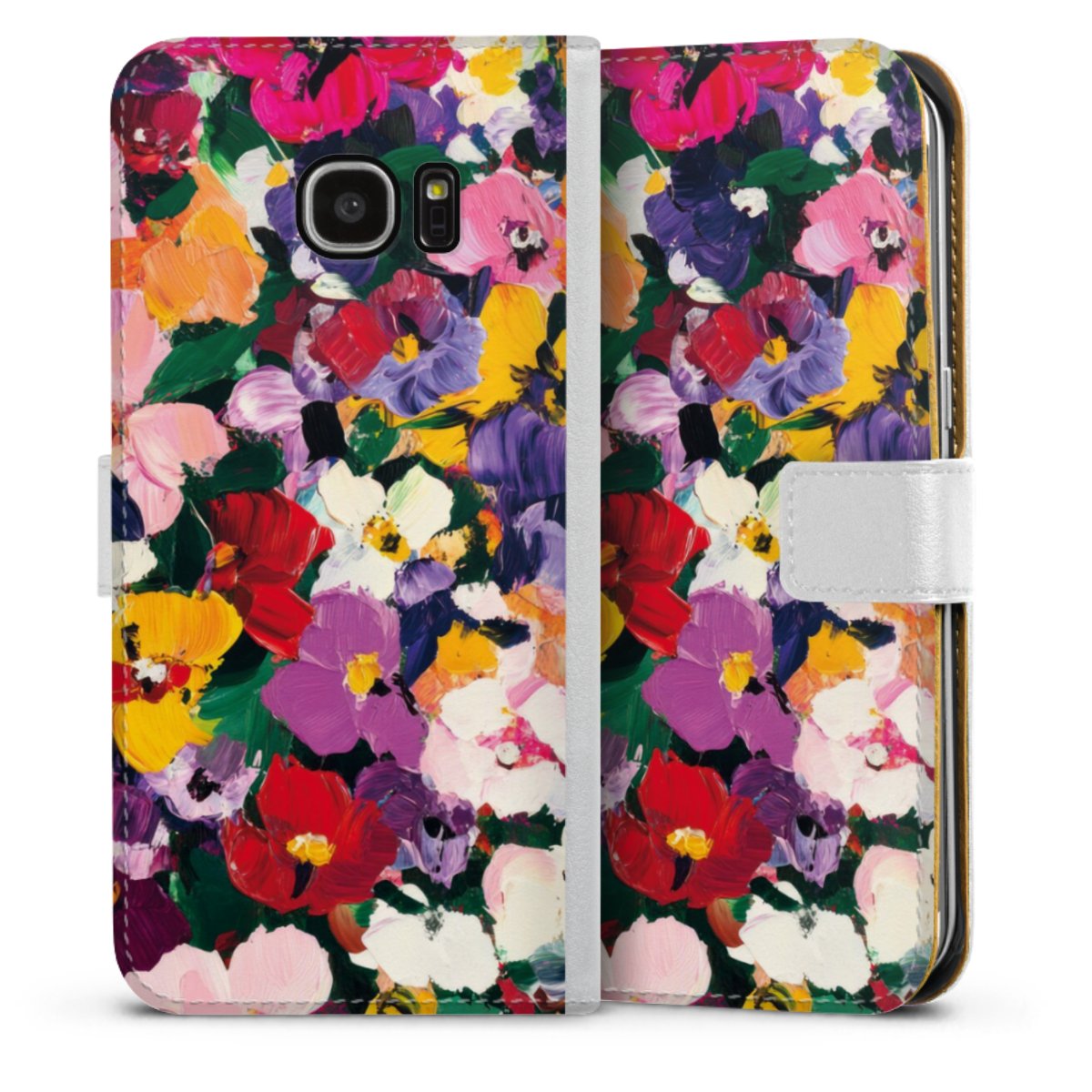 For our Sideflip Case we are using our advanced direct printing technology. The back and frontside are fully printabale, the inside of the phone bag is left unprinted. You can order the phone case without print, printed completely or also with a partial print.