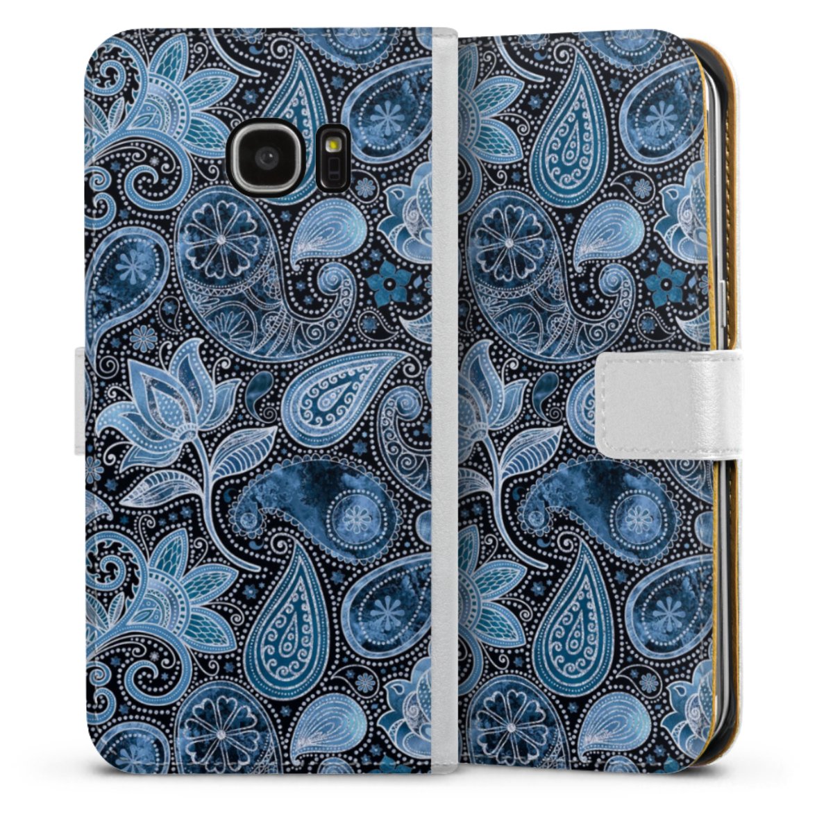 For our Sideflip Case we are using our advanced direct printing technology. The back and frontside are fully printabale, the inside of the phone bag is left unprinted. You can order the phone case without print, printed completely or also with a partial print.