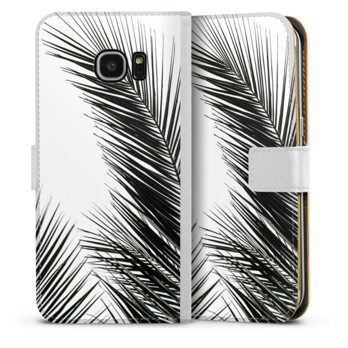 For our Sideflip Case we are using our advanced direct printing technology. The back and frontside are fully printabale, the inside of the phone bag is left unprinted. You can order the phone case without print, printed completely or also with a partial print.