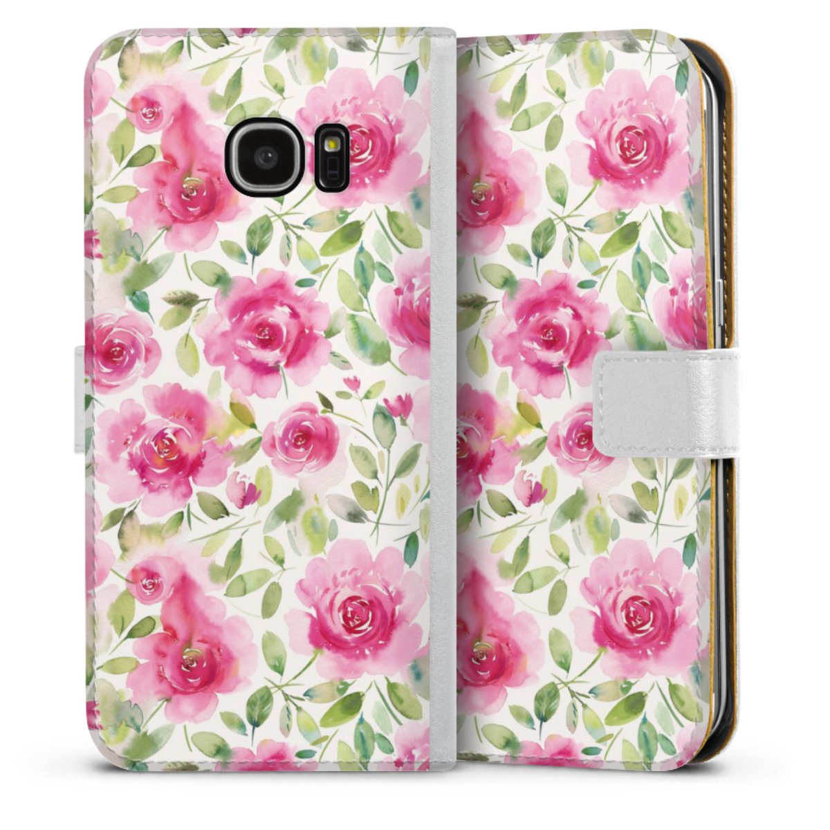 For our Sideflip Case we are using our advanced direct printing technology. The back and frontside are fully printabale, the inside of the phone bag is left unprinted. You can order the phone case without print, printed completely or also with a partial print.