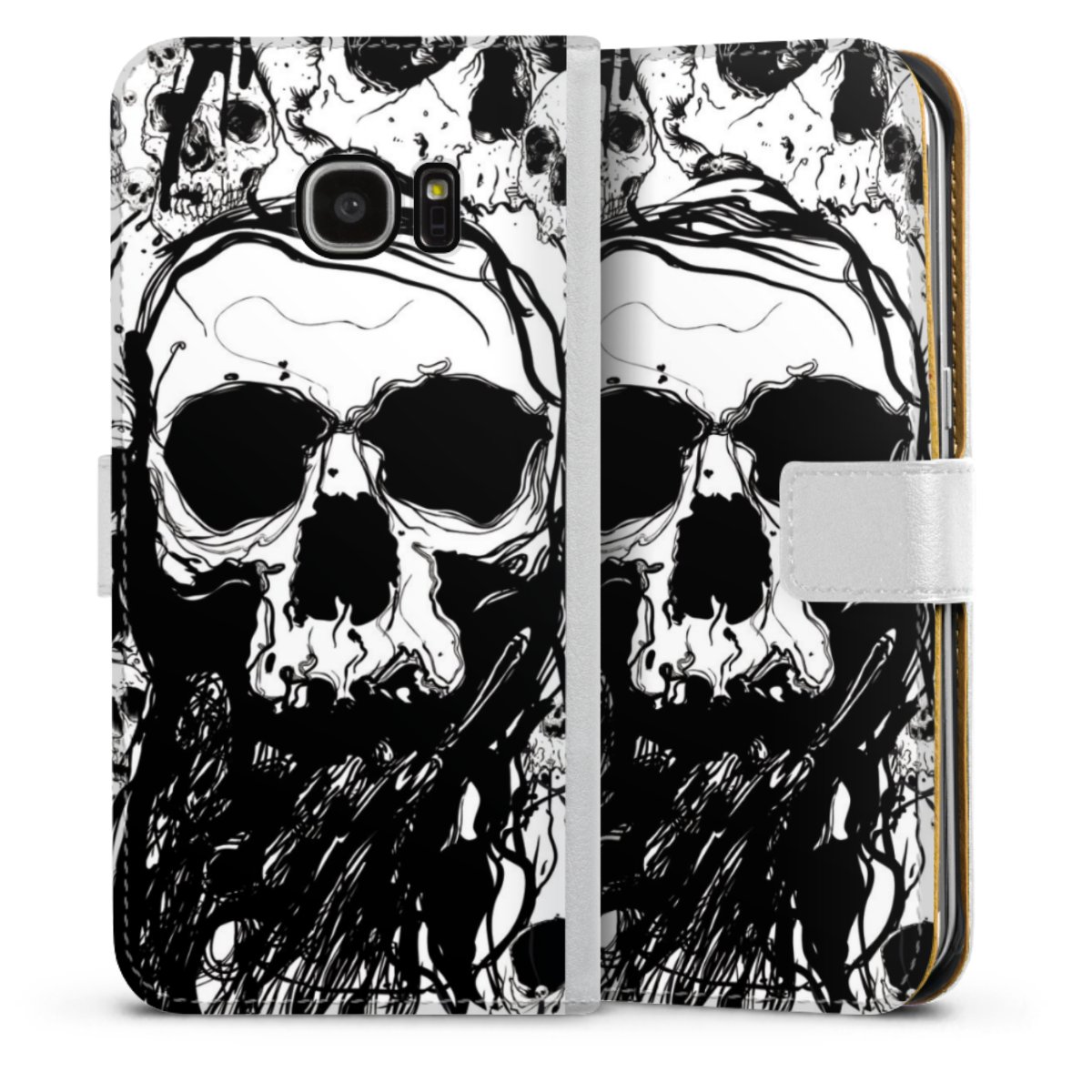 For our Sideflip Case we are using our advanced direct printing technology. The back and frontside are fully printabale, the inside of the phone bag is left unprinted. You can order the phone case without print, printed completely or also with a partial print.