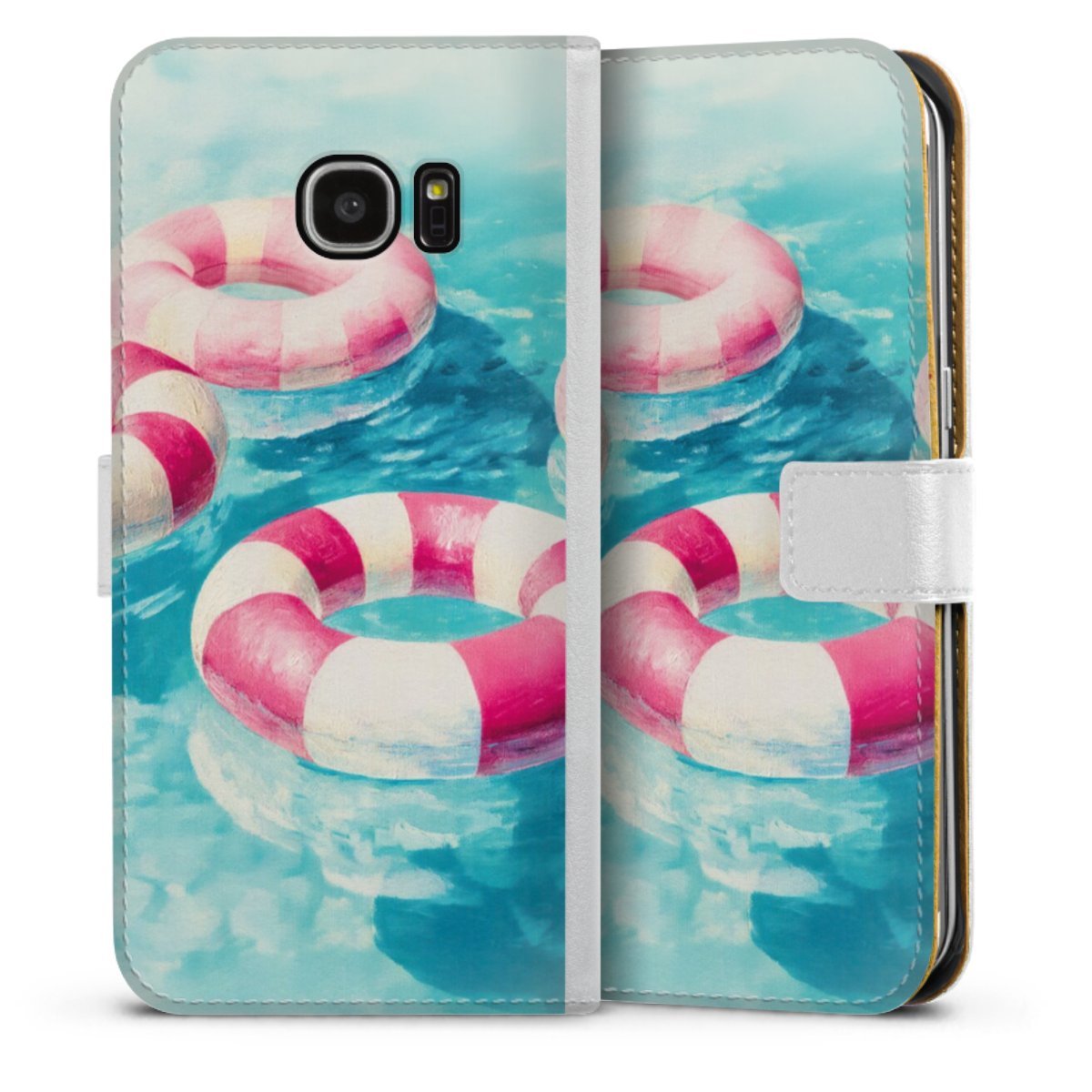 For our Sideflip Case we are using our advanced direct printing technology. The back and frontside are fully printabale, the inside of the phone bag is left unprinted. You can order the phone case without print, printed completely or also with a partial print.