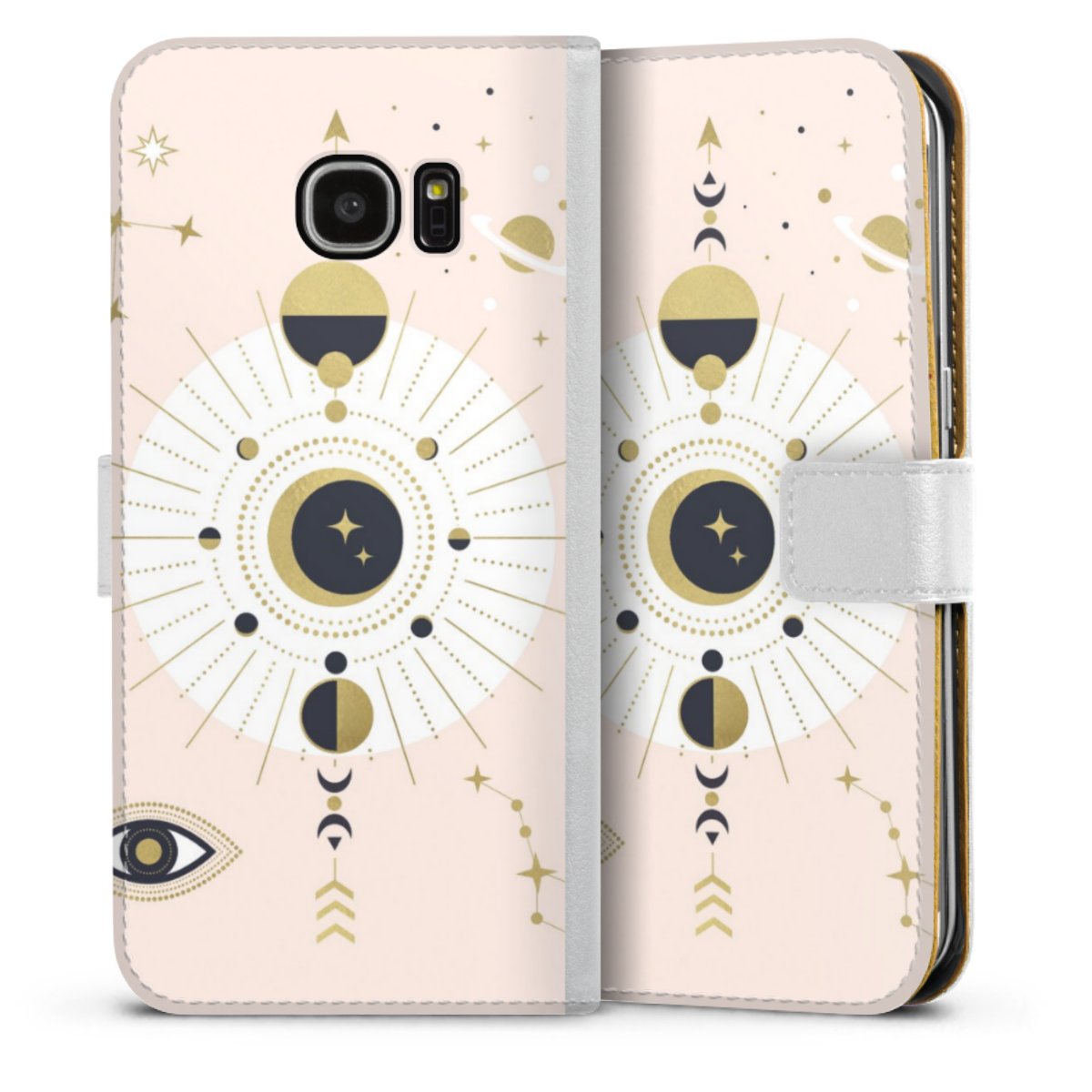 For our Sideflip Case we are using our advanced direct printing technology. The back and frontside are fully printabale, the inside of the phone bag is left unprinted. You can order the phone case without print, printed completely or also with a partial print.